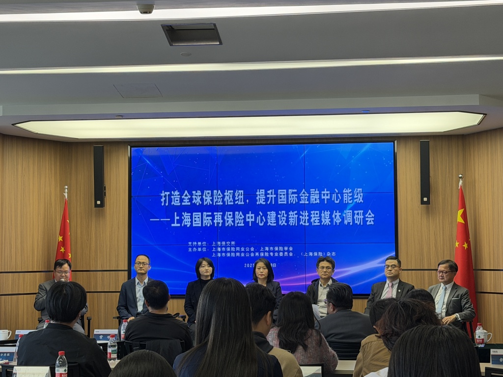 10月28日下午,由上海市保险同业公会、上海市保险学会、上海市保险同业公会再保险专业委员会、《上海保险》杂志主办,上海保险交易所支持的“打造全球保险枢纽,提升国际金融中心能级——上海国际再保险中心建设新进程”媒体调研会在上海保险交易所举办。多家保险公司代表针对上海国际再保险中心建设的实践探索进行分享探讨。