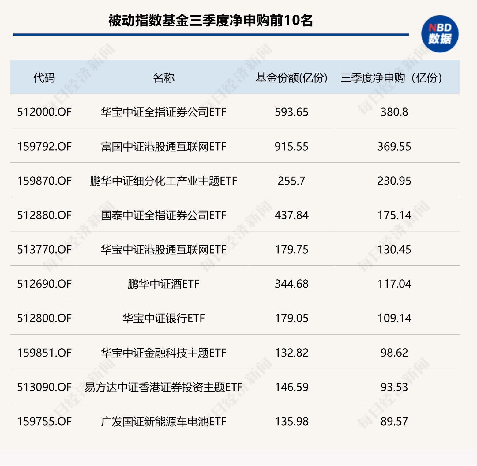 《每日经济新闻》记者根据Wind数据统计发现,三季度被动指数基金整体获得1284.17亿份净申购,87只产品净申购份额超过10亿份,其中7只产品超过百亿份,深受专业机构和个人投资者青睐。