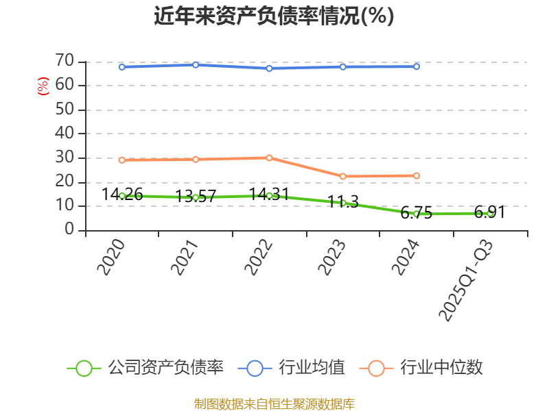 2025年前三季度,公司流动比率为12.97,速动比率为10.37。