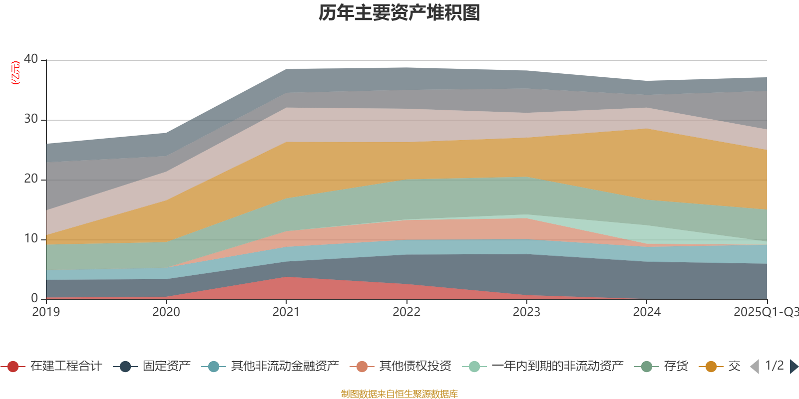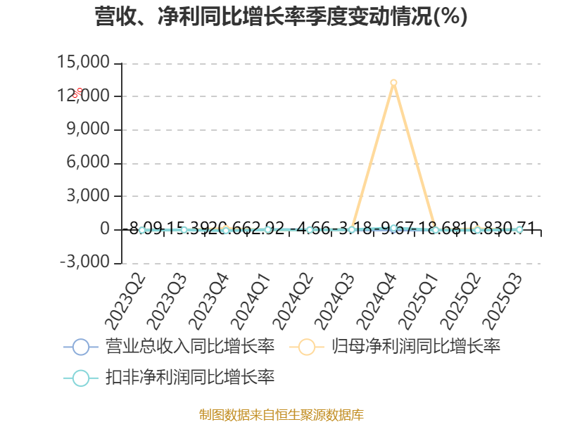 资产重大变化方面,截至2025年三季度末,公司货币资金较上年末增加203.83%,占公司总资产比重上升11.54个百分点;一年内到期的非流动资产较上年末减少82.72%,占公司总资产比重下降7.03个百分点;交易性金融资产合计较上年末减少16.29%,占公司总资产比重下降5.77个百分点;存货较上年末增加25.47%,占公司总资产比重上升2.73个百分点。