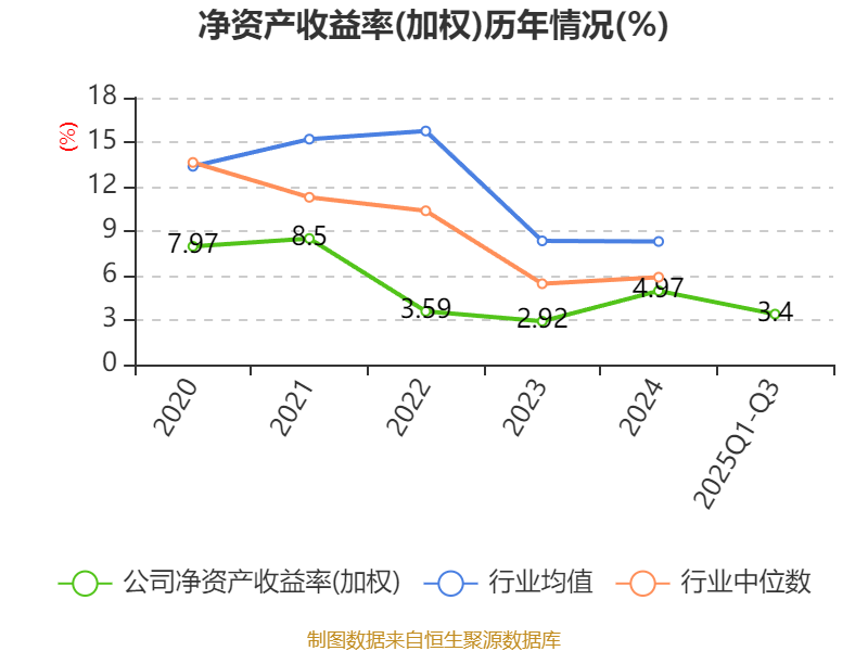 盈利能力方面, 2025年前三季度公司加权平均净资产收益率为3.4%,同比上升0.6个百分点。公司2025年前三季度投入资本回报率为3.98%,较上年同期上升0.89个百分点。