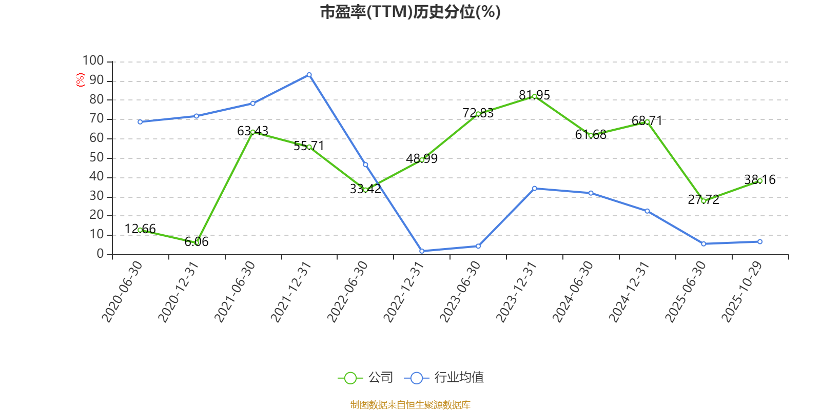 市盈率、市净率为负时,不显示当期分位数,会导致折线图中断。