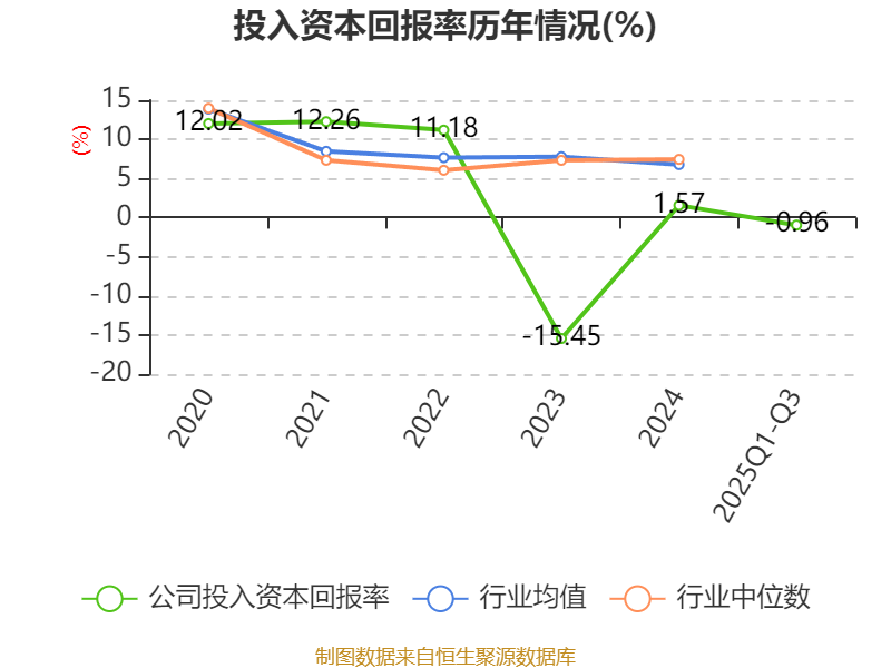 盈利能力方面, 2025年前三季度公司加权平均净资产收益率为-2.36%,同比下降3.34个百分点。公司2025年前三季度投入资本回报率为-0.96%,较上年同期下降2.39个百分点。