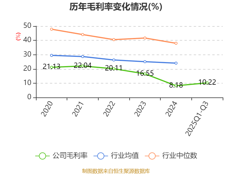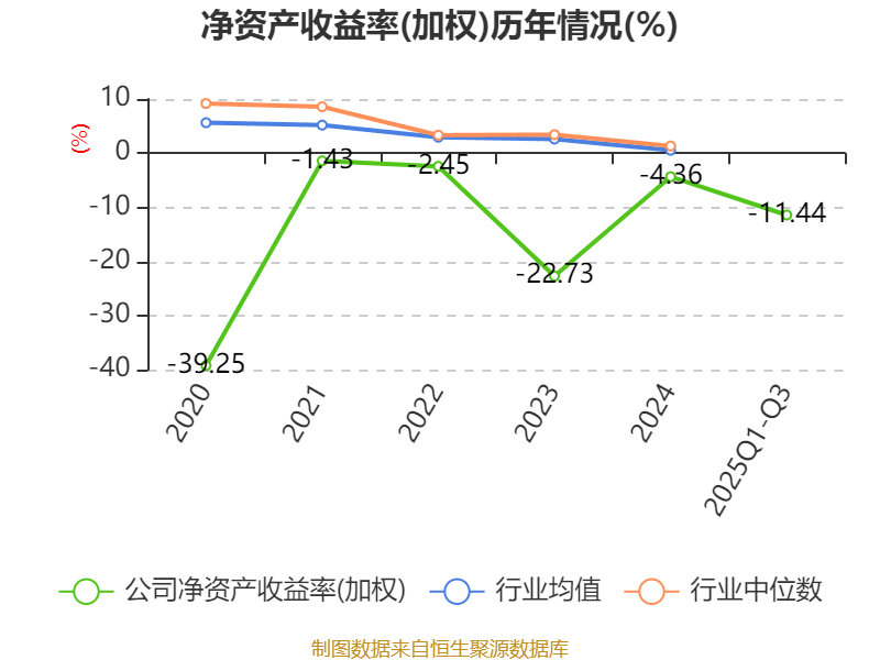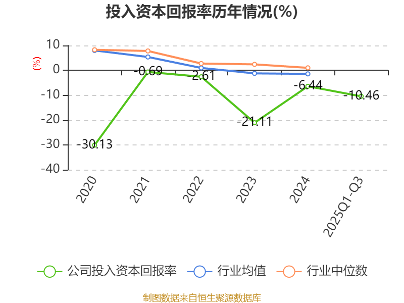 盈利能力方面, 2025年前三季度公司加权平均净资产收益率为-11.44%,同比下降0.78个百分点。公司2025年前三季度投入资本回报率为-10.46%,较上年同期上升0.38个百分点。