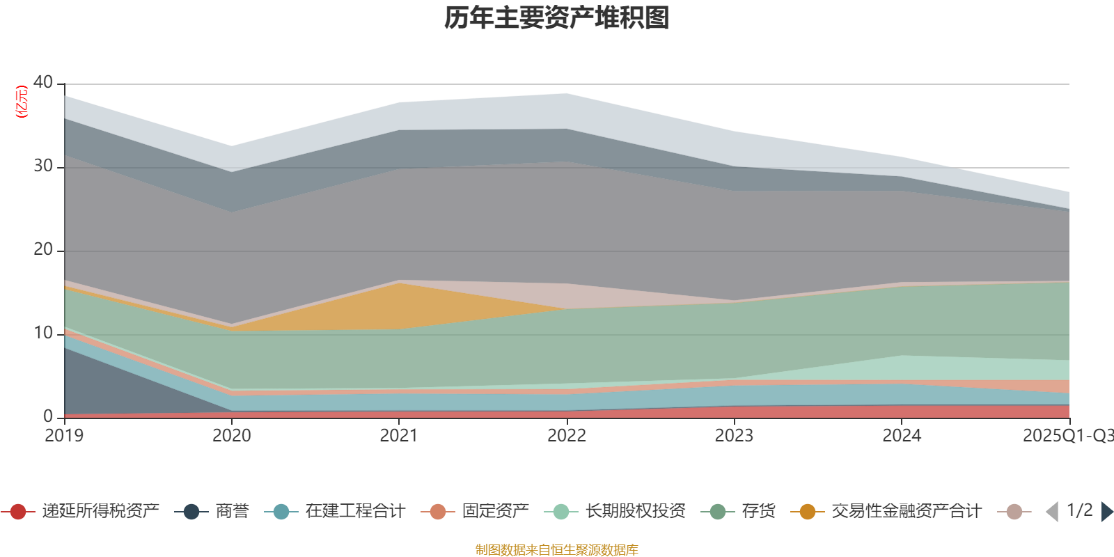 资产重大变化方面,截至2025年三季度末,公司存货较上年末增加13.38%,占公司总资产比重上升8.19个百分点;固定资产较上年末增加248.66%,占公司总资产比重上升4.41个百分点;应收票据及应收账款较上年末减少24.23%,占公司总资产比重下降4.34个百分点;货币资金较上年末减少78.42%,占公司总资产比重下降4.16个百分点。