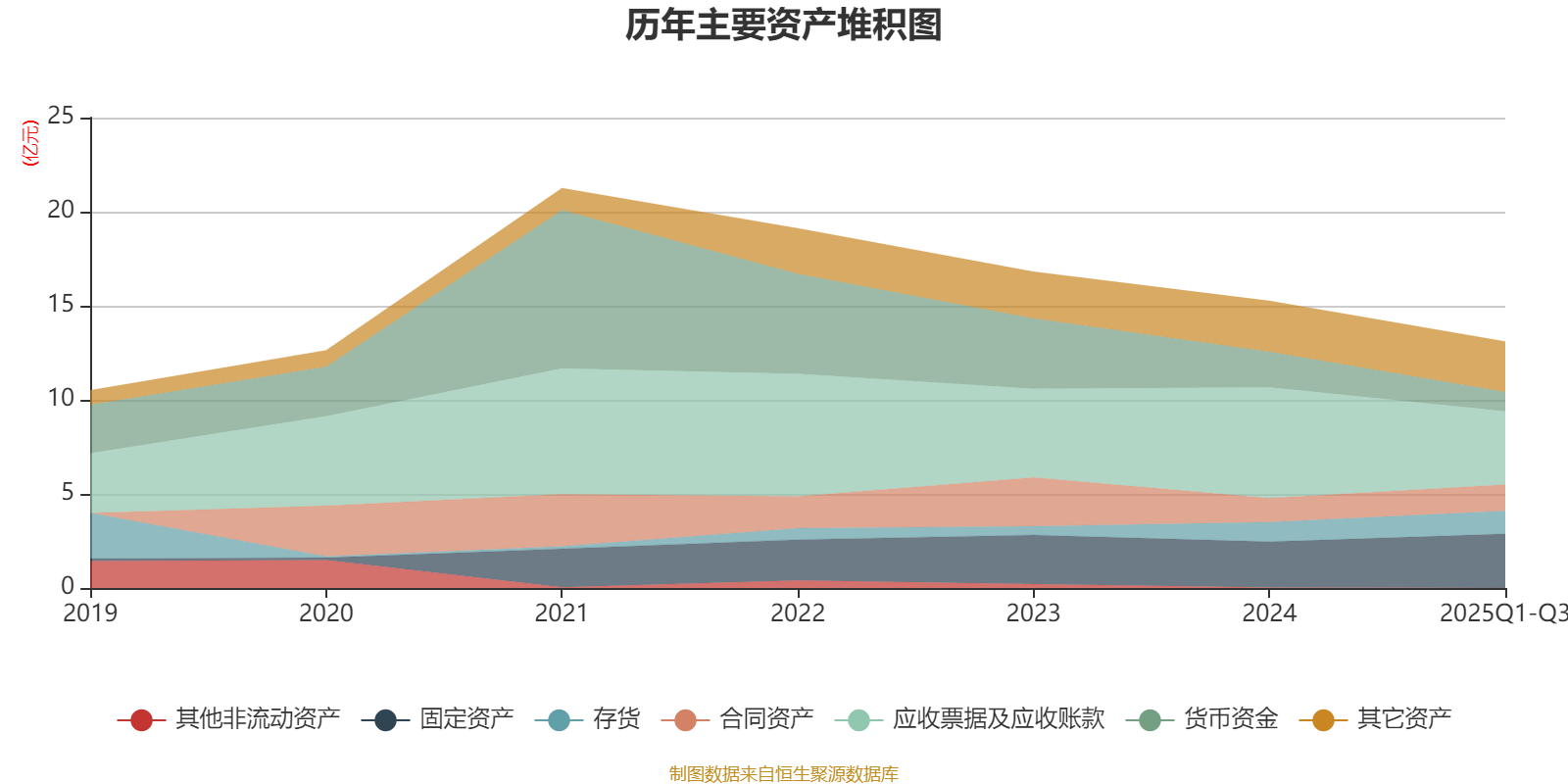 资产重大变化方面,截至2025年三季度末,公司应收票据及应收账款较上年末减少33.81%,占公司总资产比重下降8.85个百分点;固定资产较上年末增加17.96%,占公司总资产比重上升5.97个百分点;货币资金较上年末减少45.39%,占公司总资产比重下降4.49个百分点;存货较上年末增加17.36%,占公司总资产比重上升2.5个百分点。