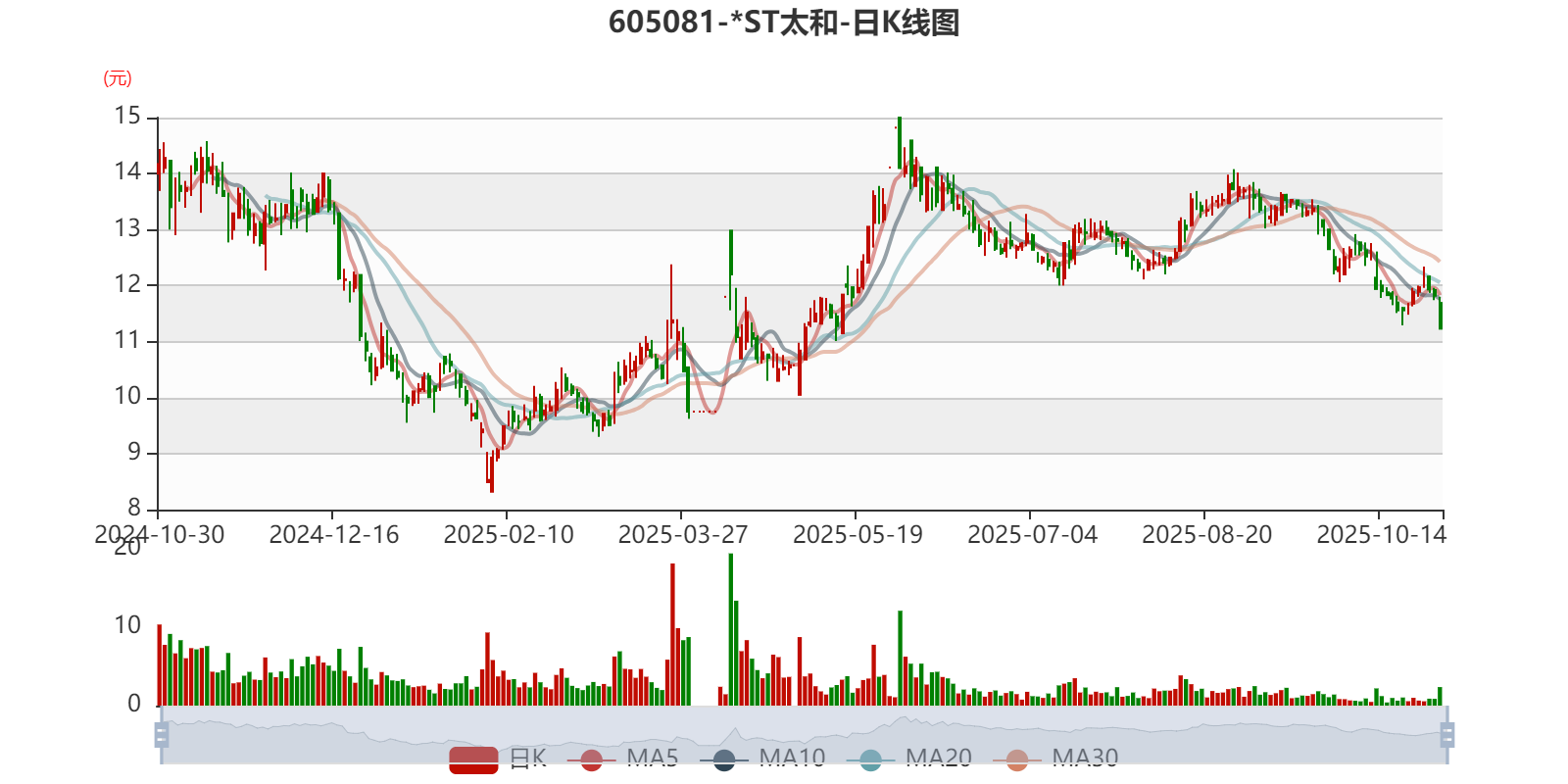 以10月29日收盘价计算,*ST太和目前市盈率(TTM)约为-3.34倍,市净率(LF)约1.43倍,市销率(TTM)约14.17倍。