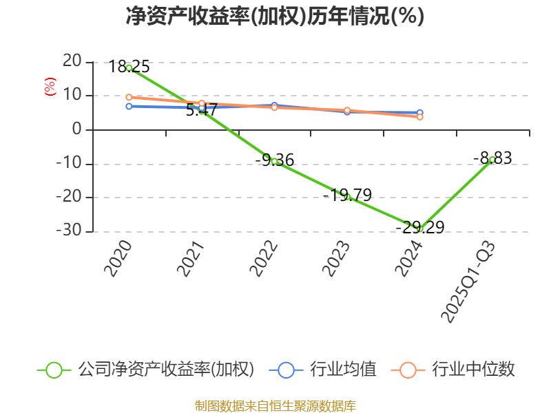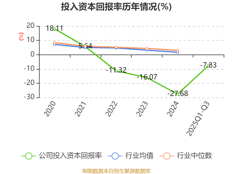 盈利能力方面, 2025年前三季度公司加权平均净资产收益率为-8.83%,同比下降6.04个百分点。公司2025年前三季度投入资本回报率为-7.83%,较上年同期下降5.14个百分点。