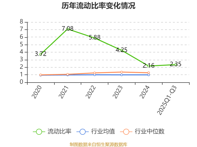 2025年前三季度,公司流动比率为2.35,速动比率为2。