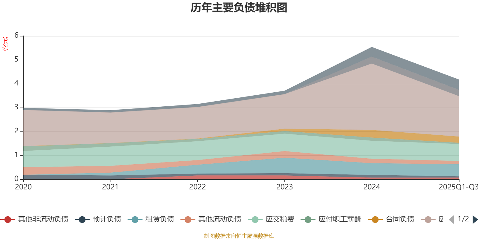 负债重大变化方面,截至2025年三季度末,公司应付票据及应付账款较上年末减少38.94%,占公司总资产比重下降5.26个百分点;租赁负债较上年末增加1.81%,占公司总资产比重上升0.6个百分点;其他应付款(含利息和股利)较上年末增加60.67%,占公司总资产比重上升0.54个百分点;应付职工薪酬较上年末减少63.6%,占公司总资产比重下降0.52个百分点。