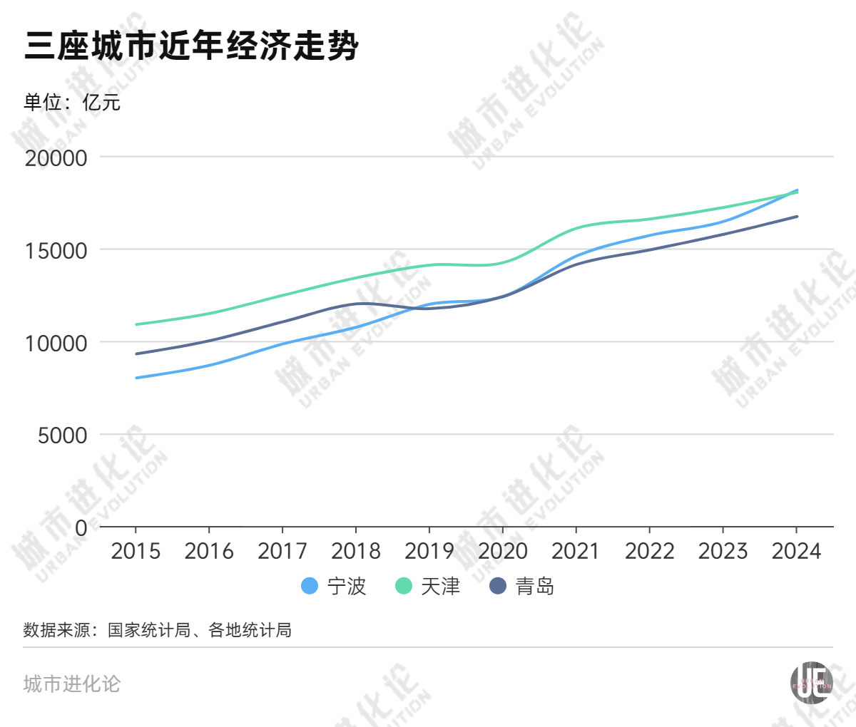不过,如当地媒体分析所言,青岛对天津与宁波的赶超,或与眼下两座城市正面临不同程度的考验有关——天津产业结构依然以石化、钢铁等传统重工业为主,新兴产业尚未涌现;宁波则是在外部环境的变动下,受到的冲击比其他城市更大。