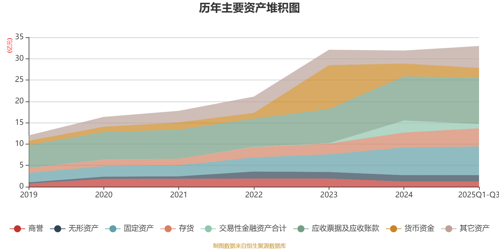 资产重大变化方面,截至2025年三季度末,公司交易性金融资产合计较上年末减少64.44%,占公司总资产比重下降5.79个百分点;在建工程合计较上年末增加538.36%,占公司总资产比重上升3个百分点;货币资金较上年末减少25.52%,占公司总资产比重下降2.64个百分点;存货较上年末增加21.97%,占公司总资产比重上升1.98个百分点。