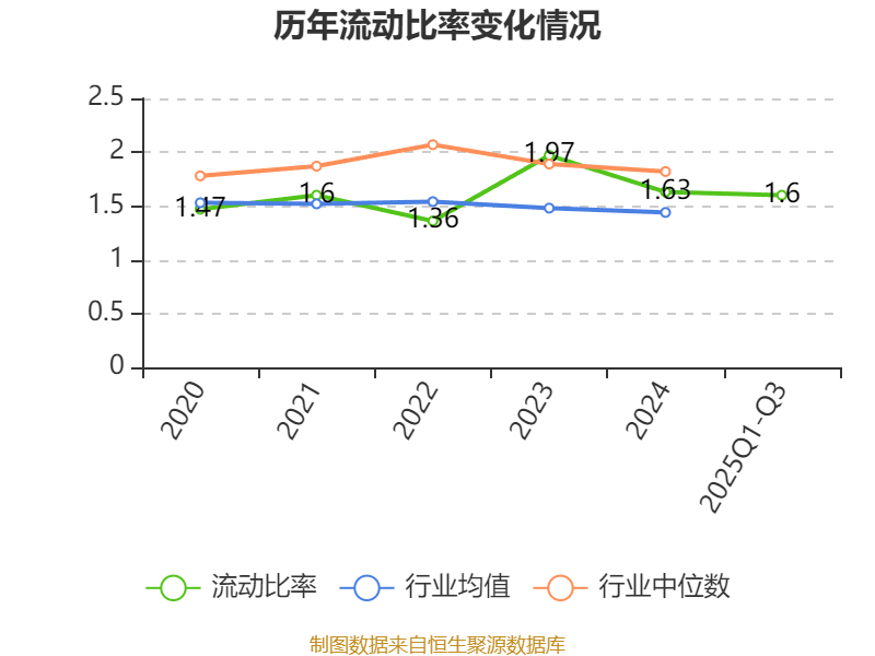 2025年前三季度,公司流动比率为1.6,速动比率为1.25。
