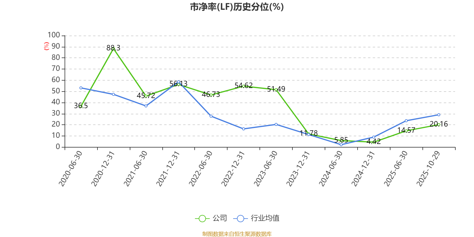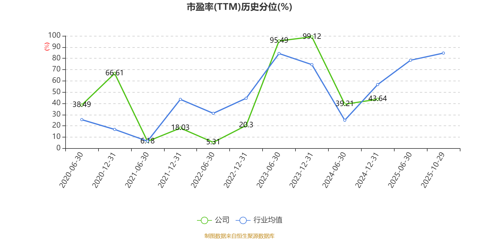 市盈率、市净率为负时,不显示当期分位数,会导致折线图中断。