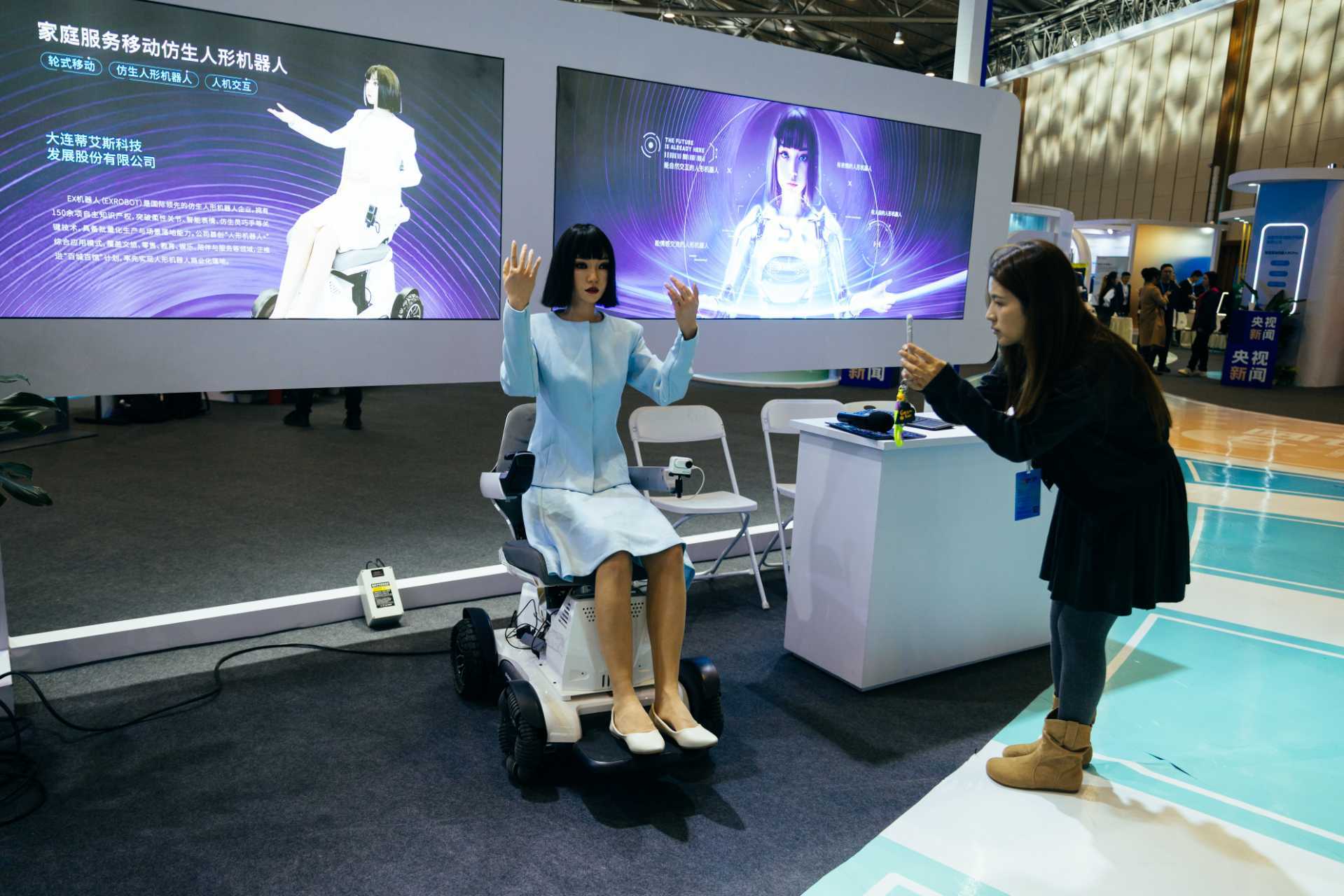 这些机器人大多与人工智能高度“捆绑”。比如一款脑控智能电动轮椅机器人,使用者只需佩戴一个轻便、非侵入式的头戴设备,运用脑机技术便可以控制轮椅。