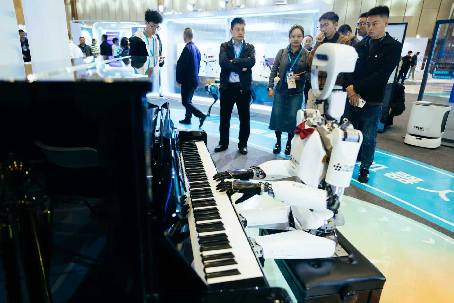 除了用于康复的机器人之外,每经记者在现场还看到,有人形机器人演奏着一曲《我和我的祖国》。“现在人形机器人在场馆讲解、聊天互动等方面的应用更多人形机器人现在的技术核心还在电机关节的程序驱动,对精度和加工都有很高要求。”相关公司的工作人员介绍。