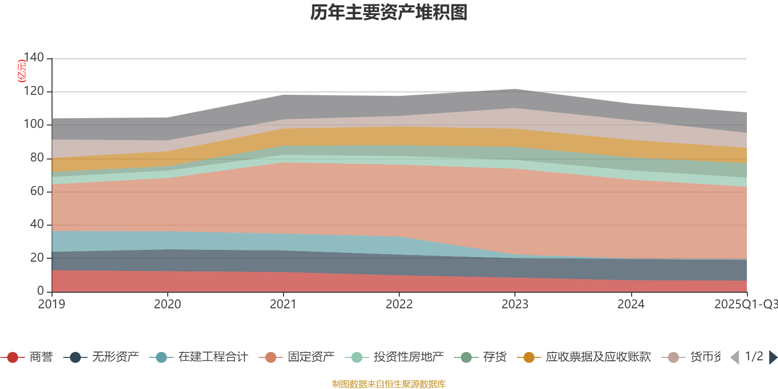 资产重大变化方面,截至2025年三季度末,公司货币资金较上年末减少24.12%,占公司总资产比重下降2.14个百分点;交易性金融资产合计占公司总资产的1.96%,上年末为0;固定资产较上年末减少8.22%,占公司总资产比重下降1.58个百分点;存货较上年末增加10.88%,占公司总资产比重上升1.12个百分点。