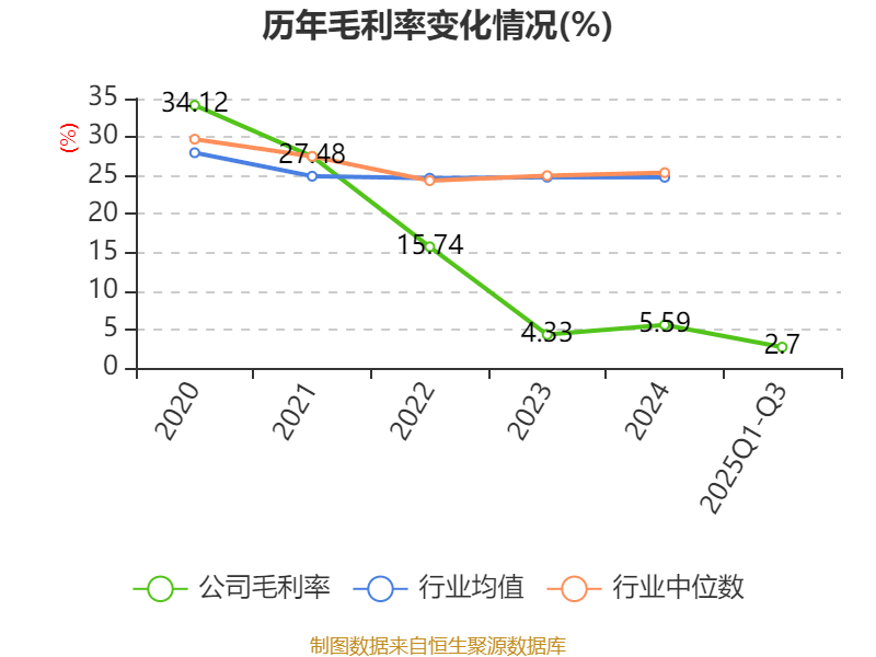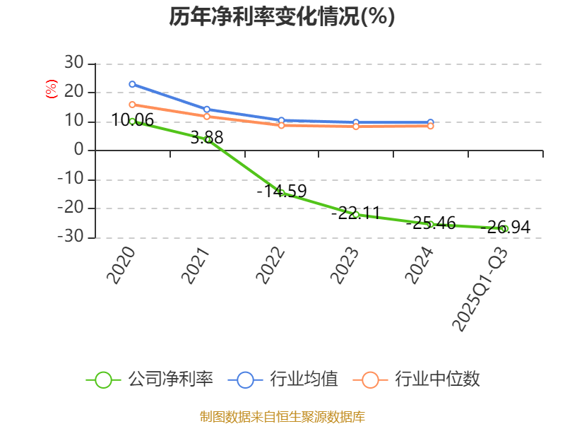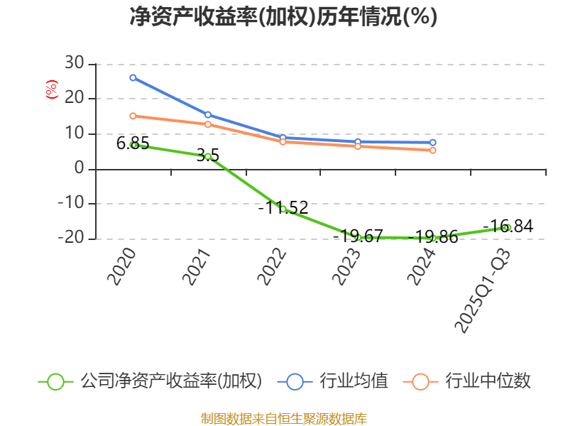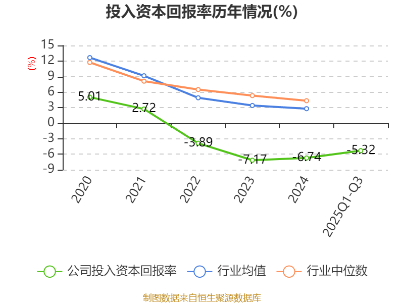 盈利能力方面, 2025年前三季度公司加权平均净资产收益率为-16.84%,同比下降8.64个百分点。公司2025年前三季度投入资本回报率为-5.32%,较上年同期下降2.58个百分点。