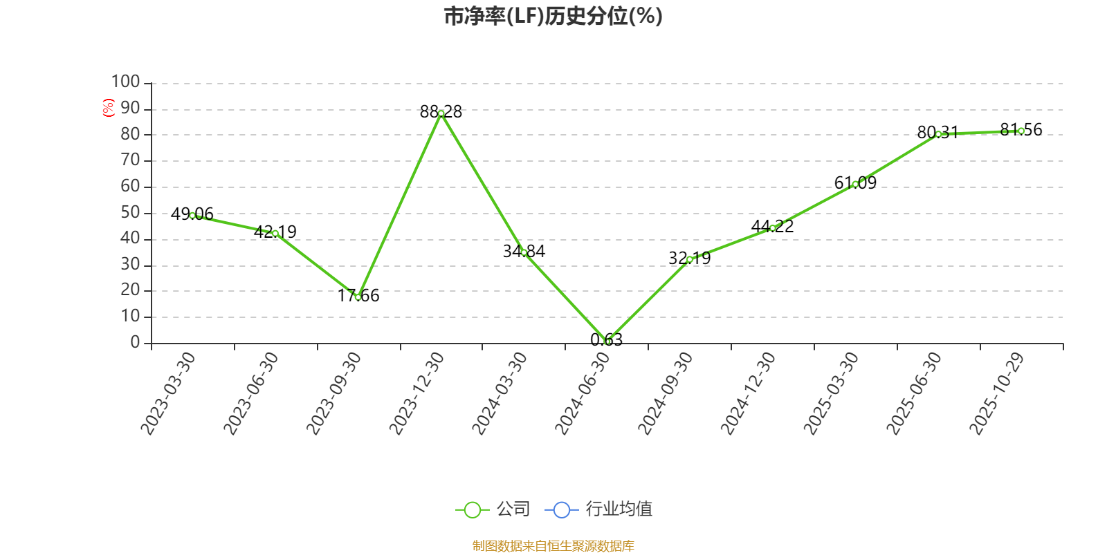 市盈率、市净率为负时,不显示当期分位数,会导致折线图中断。