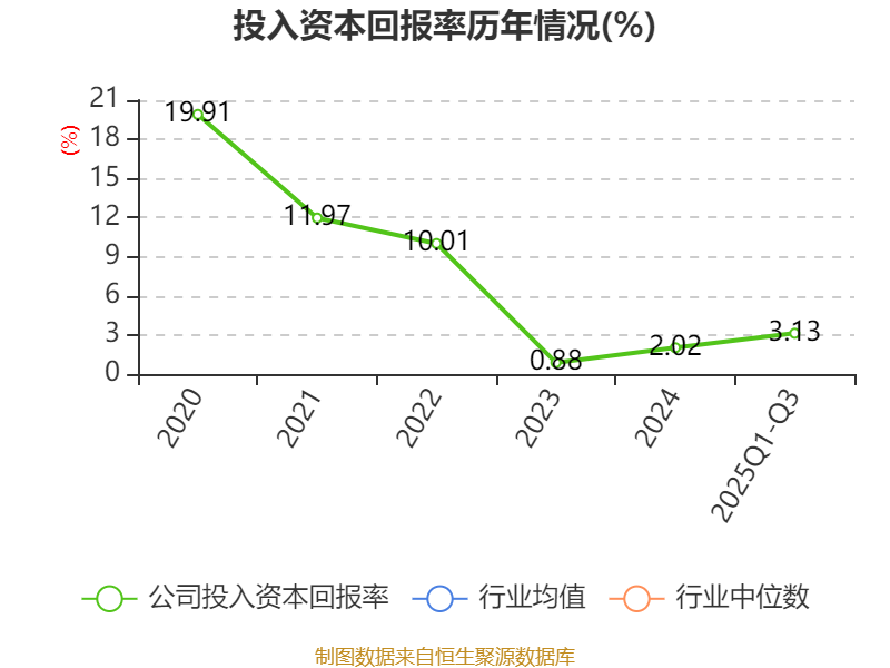 盈利能力方面, 2025年前三季度公司加权平均净资产收益率为4.05%,同比上升1.63个百分点。公司2025年前三季度投入资本回报率为3.13%,较上年同期上升1.61个百分点。
