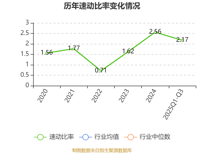 2025年前三季度,公司流动比率为2.9,速动比率为2.17。
