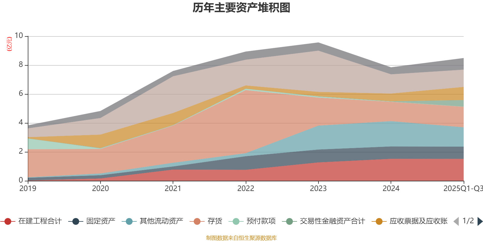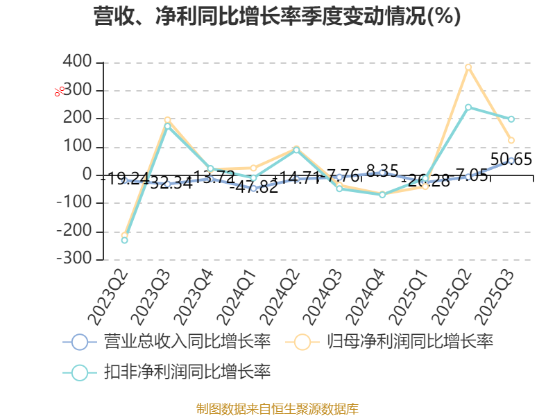 资产重大变化方面,截至2025年三季度末,公司其他流动资产较上年末减少23.39%,占公司总资产比重下降6.51个百分点;交易性金融资产合计较上年末增加2145.9%,占公司总资产比重上升5.05个百分点;应收票据及应收账款较上年末增加70.22%,占公司总资产比重上升3.91个百分点;其他应收款(含利息和股利)较上年末增加7927.71%,占公司总资产比重上升3.71个百分点。