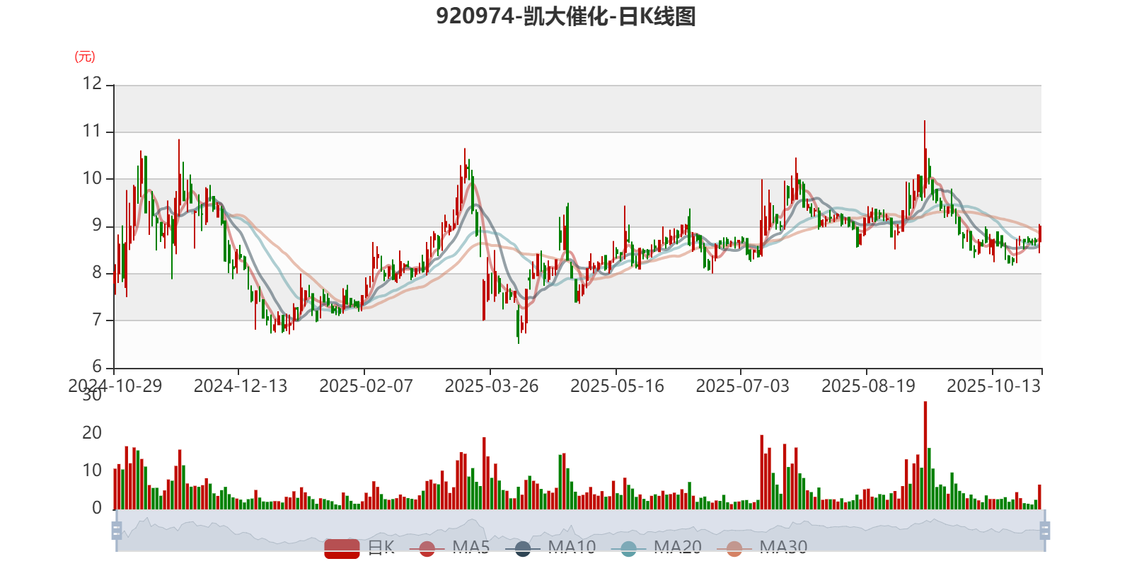 以10月29日收盘价计算,凯大催化目前市盈率(TTM)约为47.8倍,市净率(LF)约2.28倍,市销率(TTM)约1.37倍。