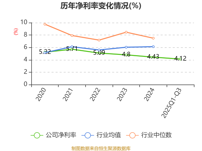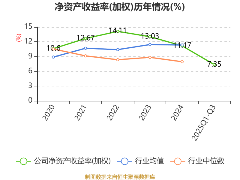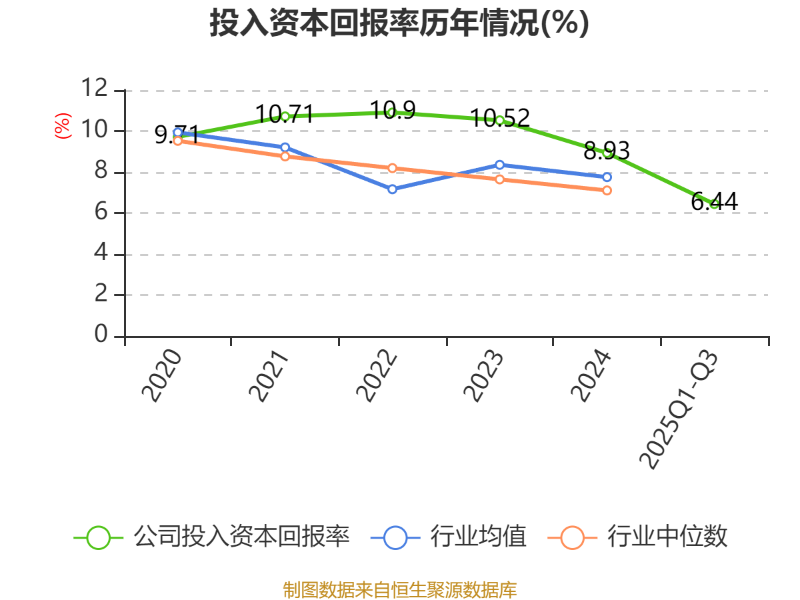 盈利能力方面, 2025年前三季度公司加权平均净资产收益率为7.35%,同比下降0.19个百分点。公司2025年前三季度投入资本回报率为6.44%,较上年同期上升0.35个百分点。