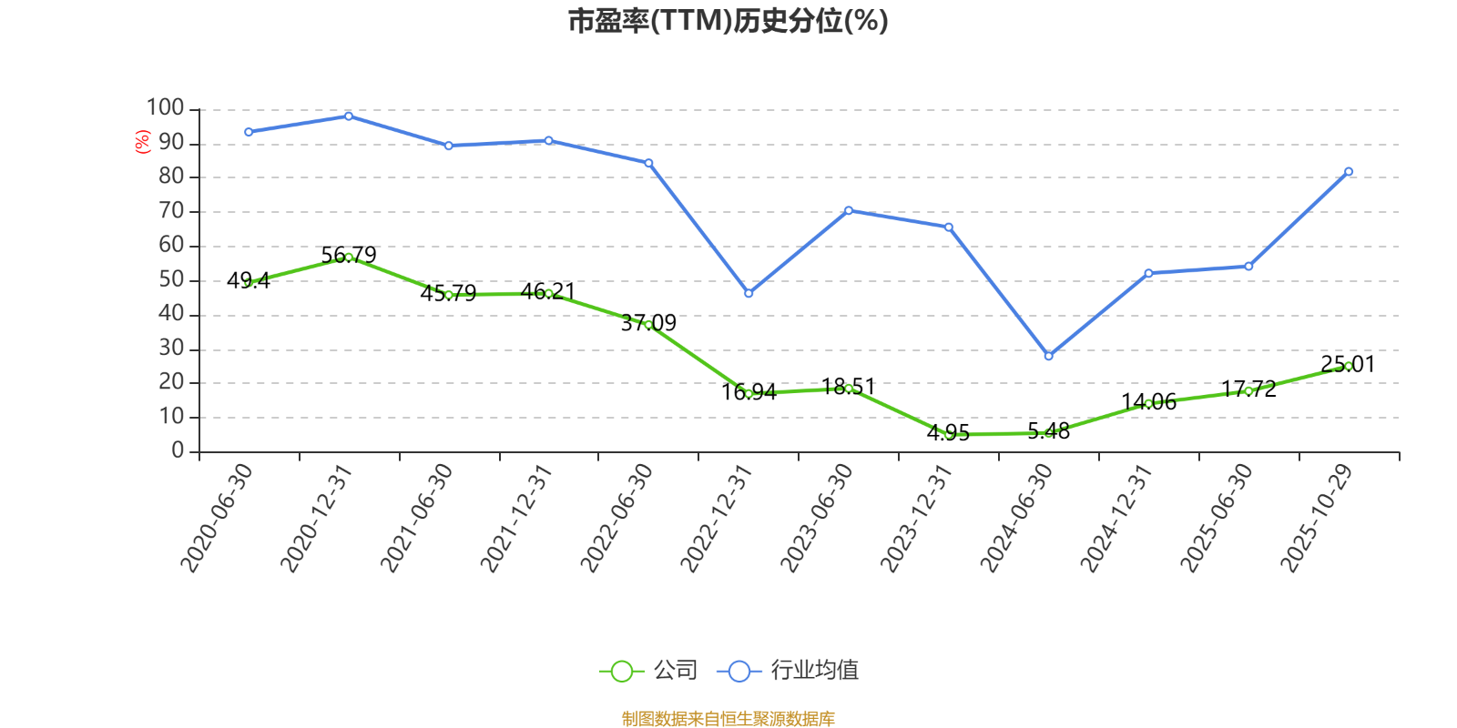 市盈率、市净率为负时,不显示当期分位数,会导致折线图中断。