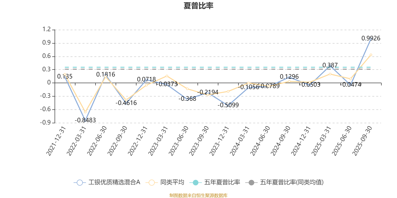 截至9月30日,基金近三年夏普比率为0.3499,位于同类可比基金880/1285。
