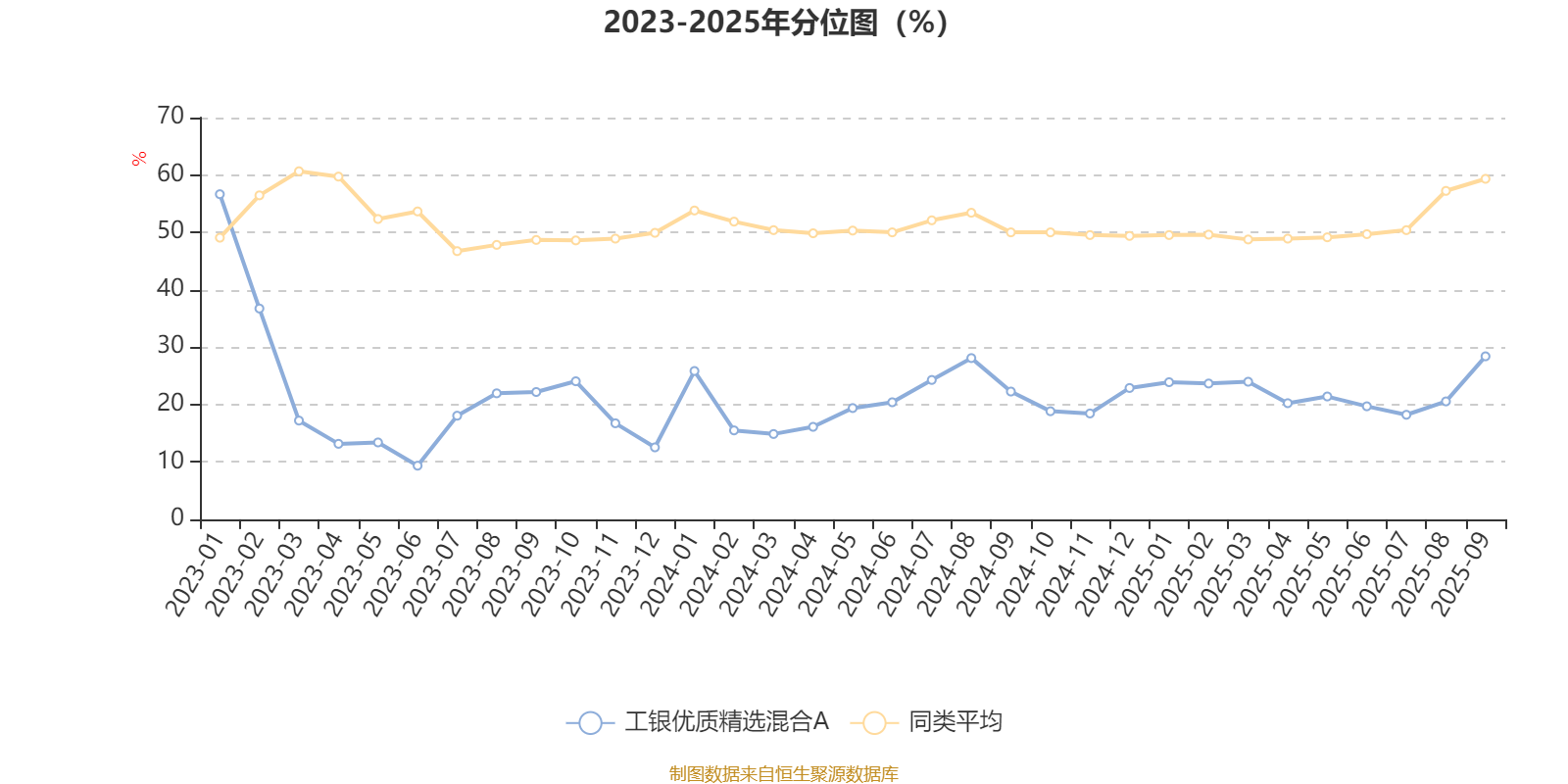 截至10月28日,工银优质精选混合A近三个月复权单位净值增长率为18.91%,位于同类可比基金391/1287;近半年复权单位净值增长率为29.93%,位于同类可比基金483/1287;近一年复权单位净值增长率为26.39%,位于同类可比基金508/1287;近三年复权单位净值增长率为9.44%,位于同类可比基金807/1286。