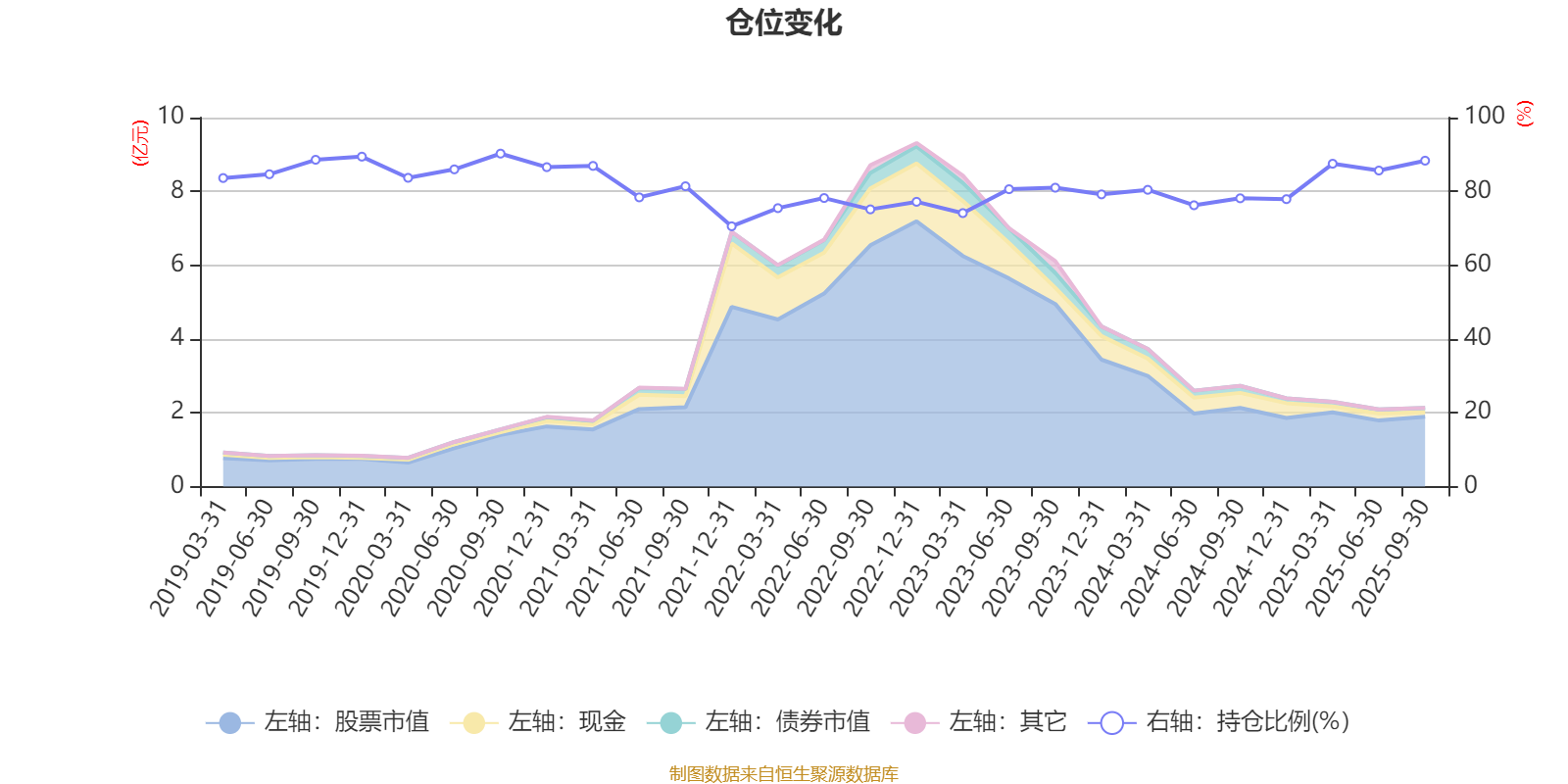 基金管理人在三季报中表示,组合结构上产业升级类资产配置主要为科技创新类资产,超配医药与AI 产业链,并增持具备主业竞争力及供需改善的储能细分龙头;消费升级方向则聚焦基本面与估值匹配的优质个股,降低部分业绩存在压力的个股仓位,优化风险收益比。