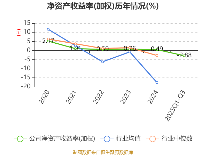 盈利能力方面, 2025年前三季度公司加权平均净资产收益率为-2.88%,同比下降3.79个百分点。公司2025年前三季度投入资本回报率为-0.1%,较上年同期下降1.69个百分点。