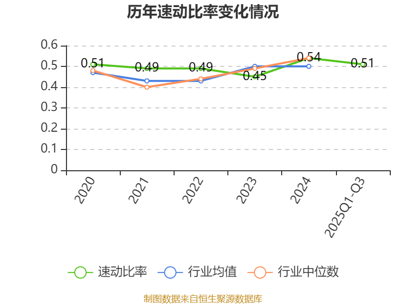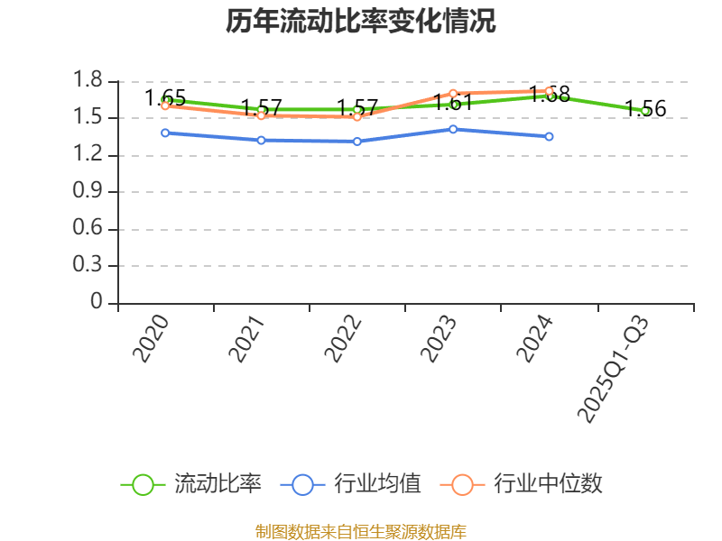 2025年前三季度,公司流动比率为1.56,速动比率为0.51。
