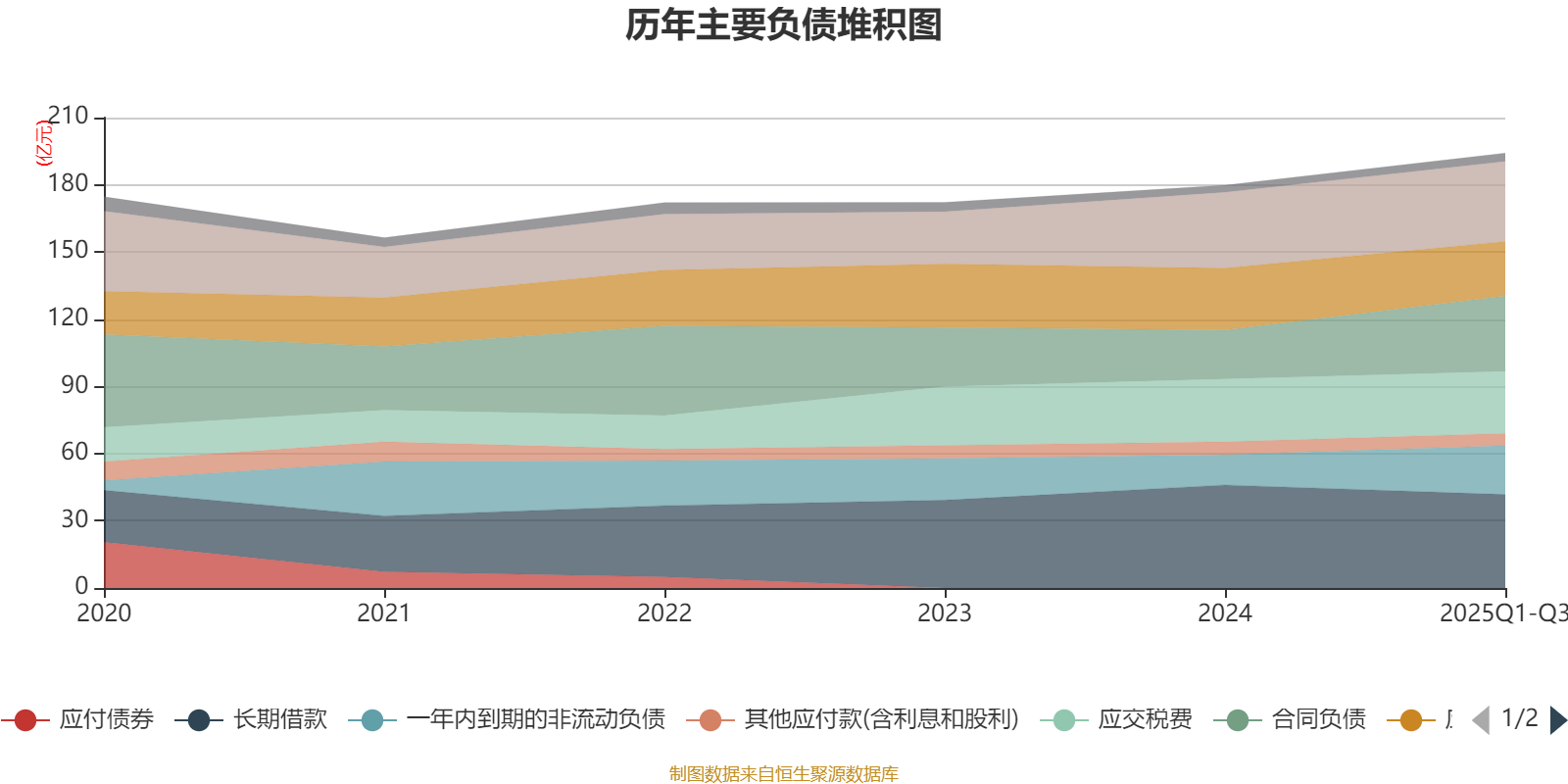 负债重大变化方面,截至2025年三季度末,公司合同负债较上年末增加53.8%,占公司总资产比重上升4.21个百分点;一年内到期的非流动负债较上年末增加60.74%,占公司总资产比重上升2.98个百分点;长期借款较上年末减少9.21%,占公司总资产比重下降2.61个百分点;应付票据及应付账款较上年末减少12.09%,占公司总资产比重下降1.89个百分点。