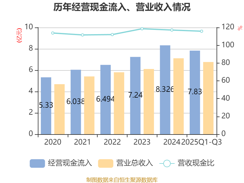 2025年前三季度,公司流动比率为3.39,速动比率为3.08。