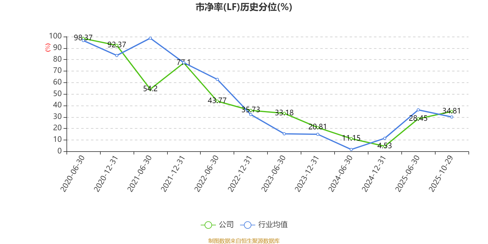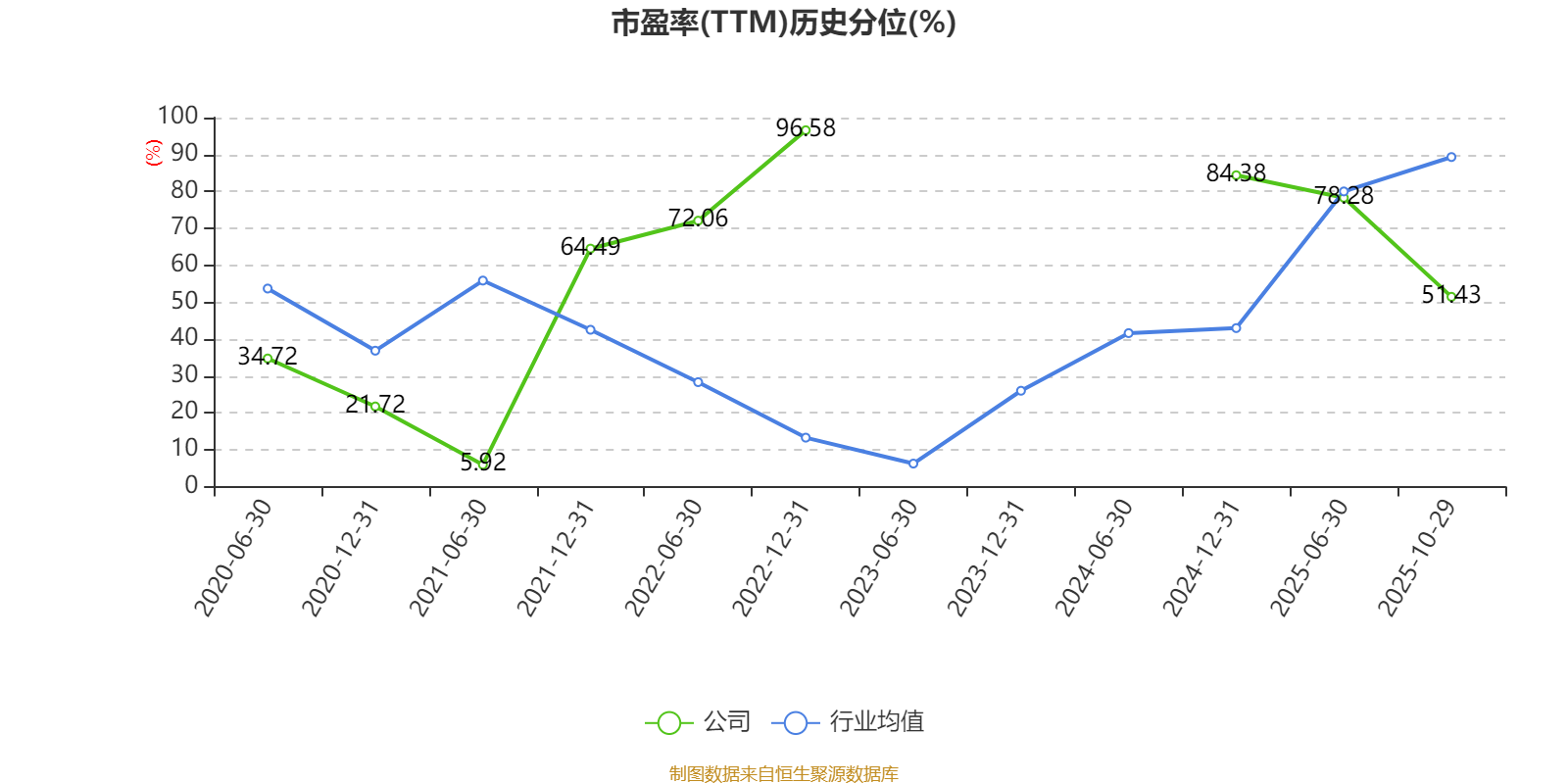 市盈率、市净率为负时,不显示当期分位数,会导致折线图中断。
