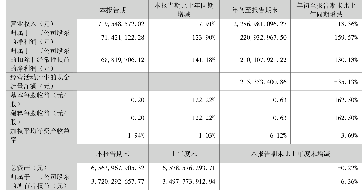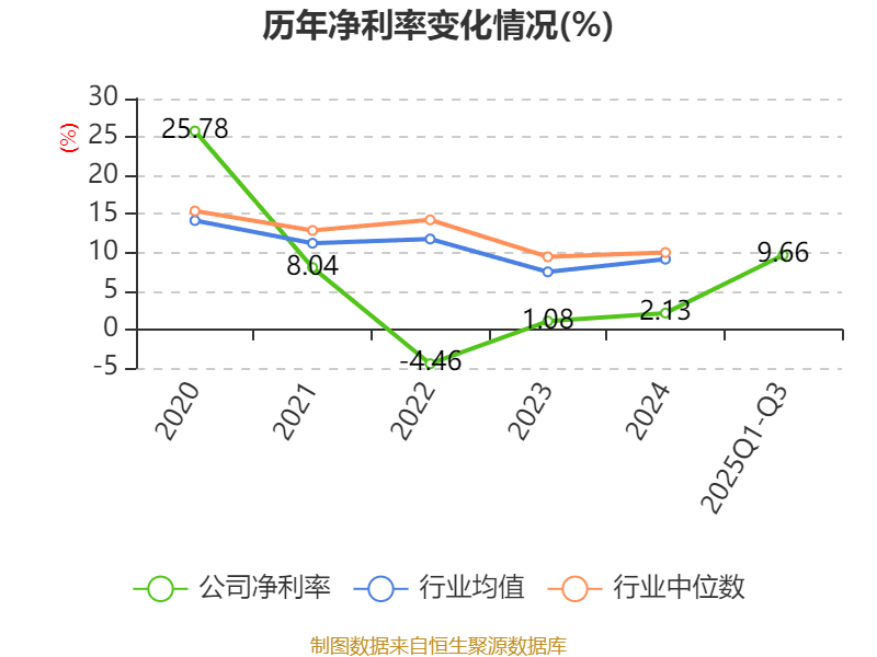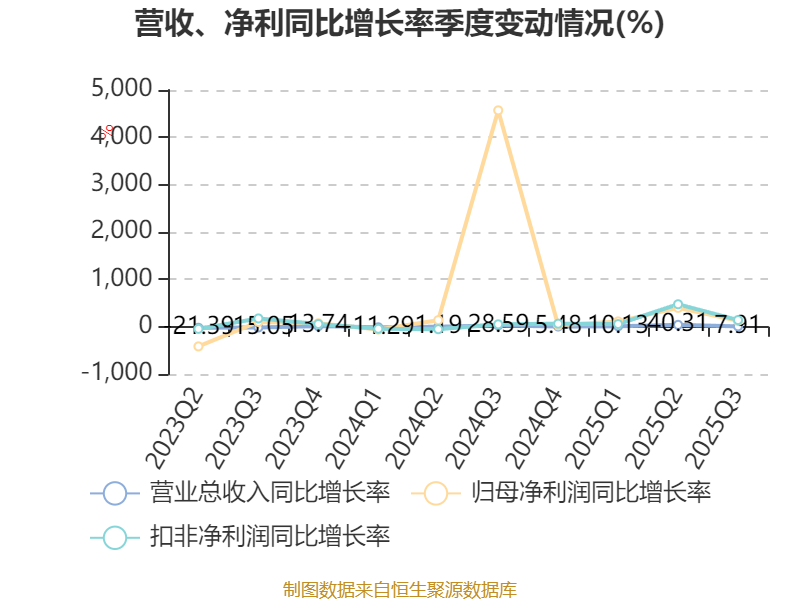 资产重大变化方面,截至2025年三季度末,公司货币资金较上年末减少34.53%,占公司总资产比重下降3.1个百分点;在建工程合计较上年末增加42.49%,占公司总资产比重上升2.13个百分点;应收票据及应收账款较上年末增加18.44%,占公司总资产比重上升1.3个百分点;其他权益工具投资较上年末增加95.42%,占公司总资产比重上升0.9个百分点。