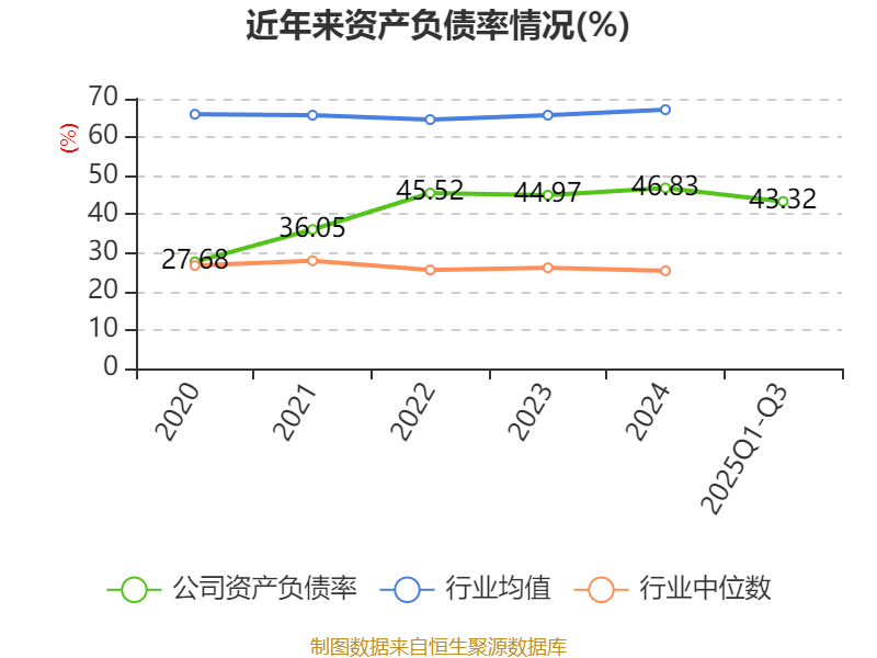 2025年前三季度,公司流动比率为1.19,速动比率为0.45。