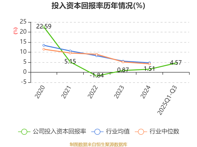 盈利能力方面, 2025年前三季度公司加权平均净资产收益率为6.12%,同比上升3.69个百分点。公司2025年前三季度投入资本回报率为4.57%,较上年同期上升2.58个百分点。