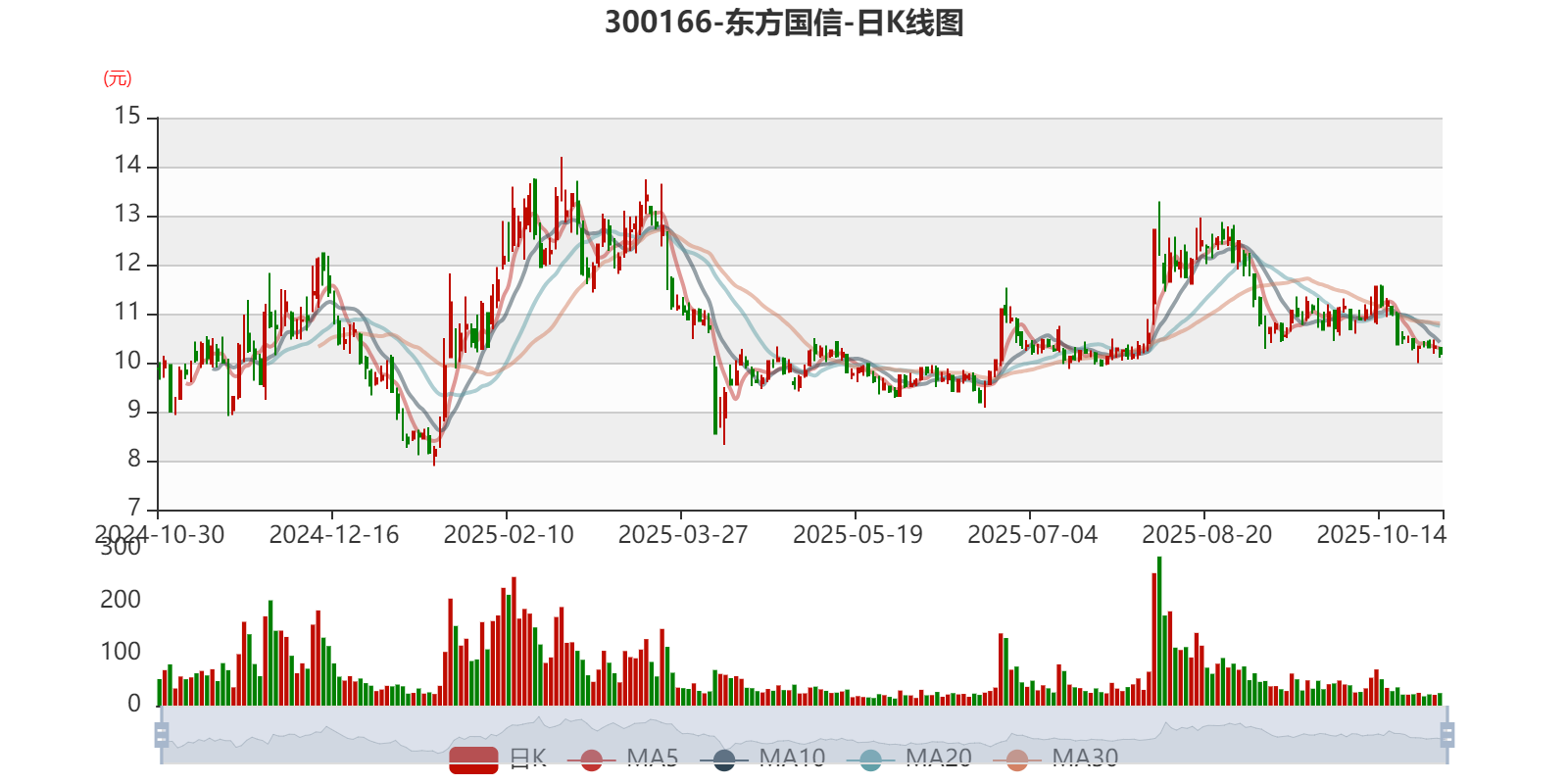 中证智能财讯东方国信(300166)10月30日披露2025年第三季度报告。前三季度公司实现营业总收入14.31亿元,同比下降3.73%;归母净利润亏损9848.74万元,上年同期盈利2102.38万元;扣非净利润亏损1.27亿元,上年同期亏损2598.32万元;经营活动产生的现金流量净额为-2.72亿元,上年同期为-8722.5万元;报告期内,东方国信基本每股收益为-0.09元,加权平均净资产收益率为-1.65%。