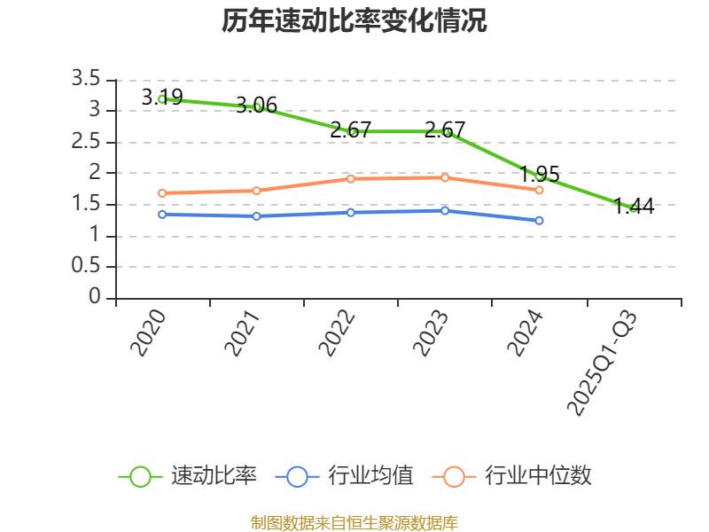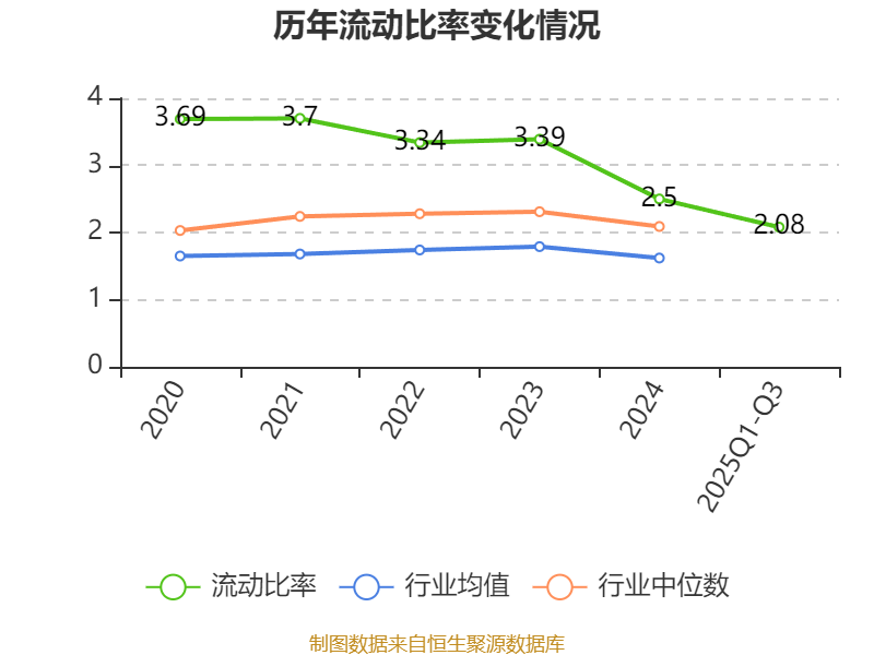 2025年前三季度,公司流动比率为2.08,速动比率为1.44。