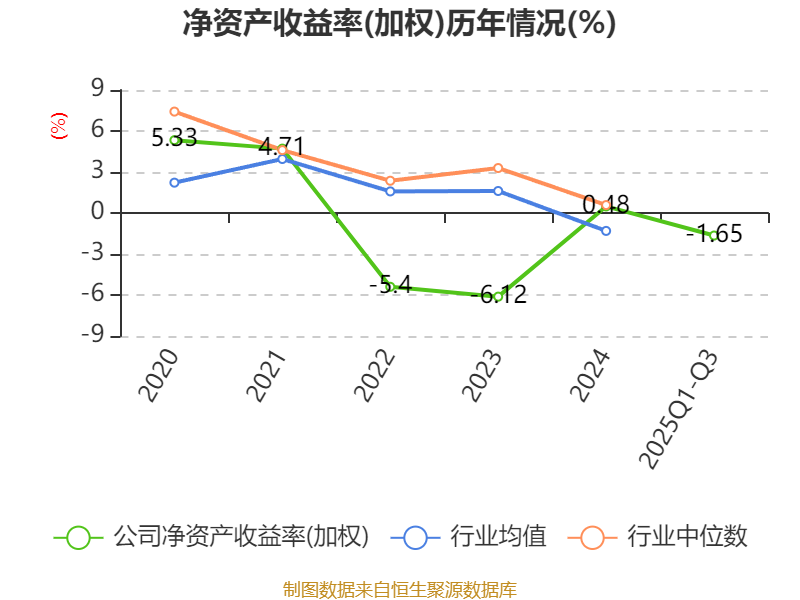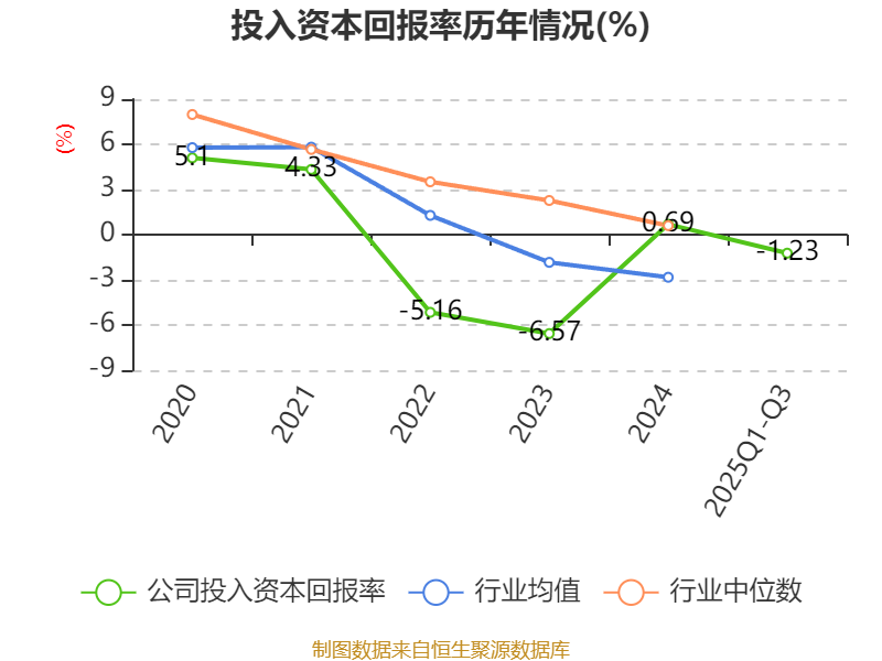 盈利能力方面, 2025年前三季度公司加权平均净资产收益率为-1.65%,同比下降1.99个百分点。公司2025年前三季度投入资本回报率为-1.23%,较上年同期下降1.01个百分点。