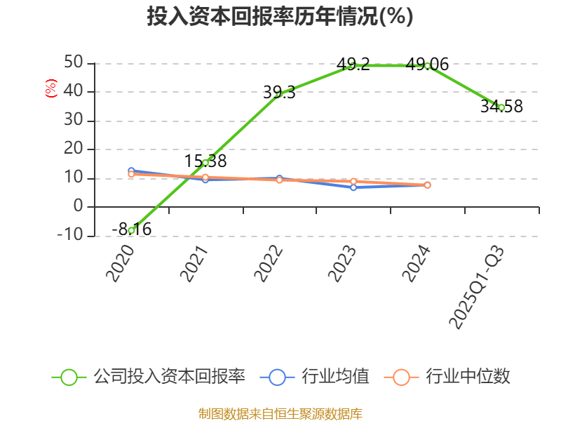 盈利能力方面, 2025年前三季度公司加权平均净资产收益率为33.61%,同比下降11.57个百分点。公司2025年前三季度投入资本回报率为34.58%,较上年同期下降4.72个百分点。
