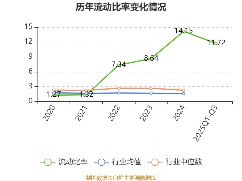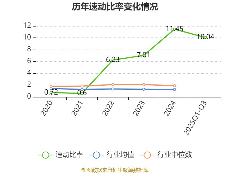2025年前三季度,公司流动比率为11.72,速动比率为10.04。