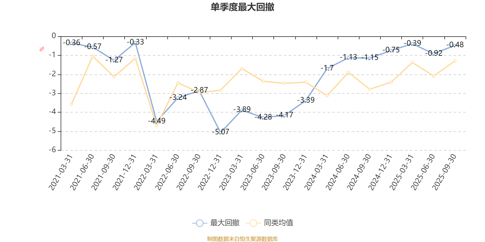 截至10月28日,基金近三年最大回撤为12.31%,同类可比基金排名457/535。单季度最大回撤出现在2022年四季度,为5.07%。
