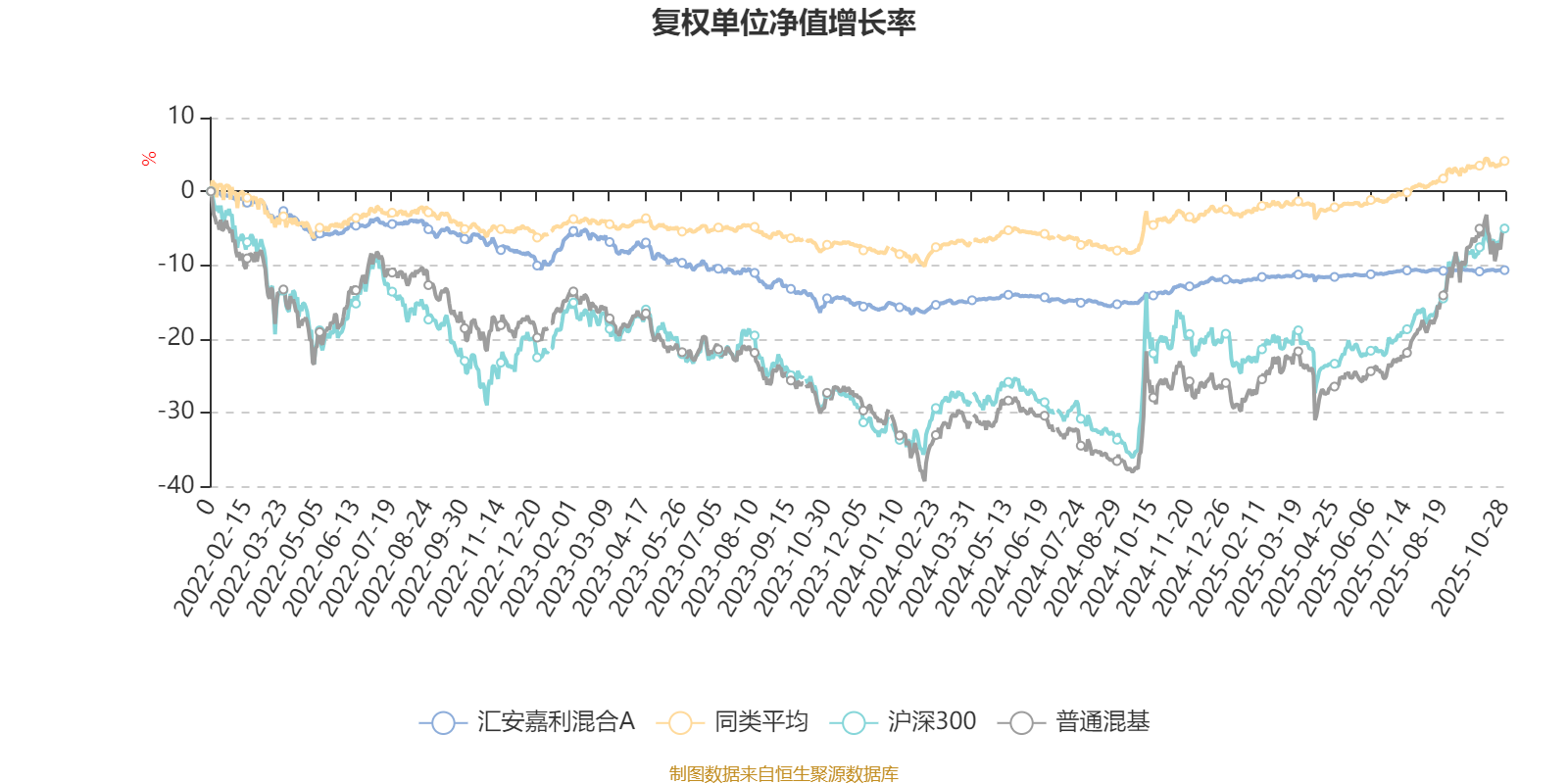 截至10月28日,汇安嘉利混合A近三个月复权单位净值增长率为0.11%,位于同类可比基金588/629;近半年复权单位净值增长率为1.13%,位于同类可比基金605/629;近一年复权单位净值增长率为3.35%,位于同类可比基金548/623;近三年复权单位净值增长率为-3.91%,位于同类可比基金551/557。