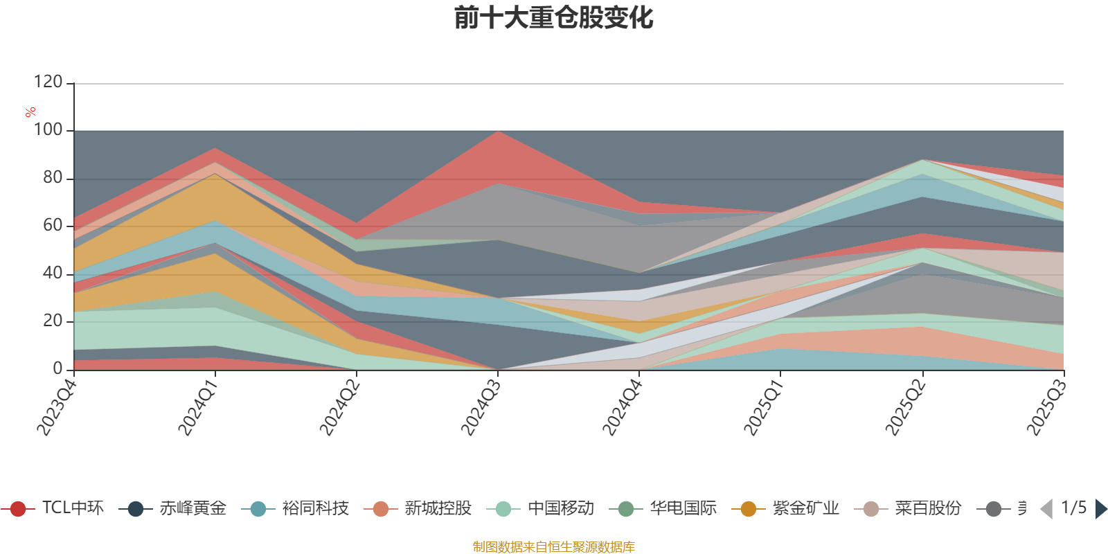 该基金持股集中度较高,近2年前十大重仓股集中度长期超过60%。截至2025年三季度末,基金十大重仓股分别是顺丰控股、伊利股份、中国移动、美的集团、新城控股、四川路桥、安图生物、中谷物流、招商银行、宝丰能源。