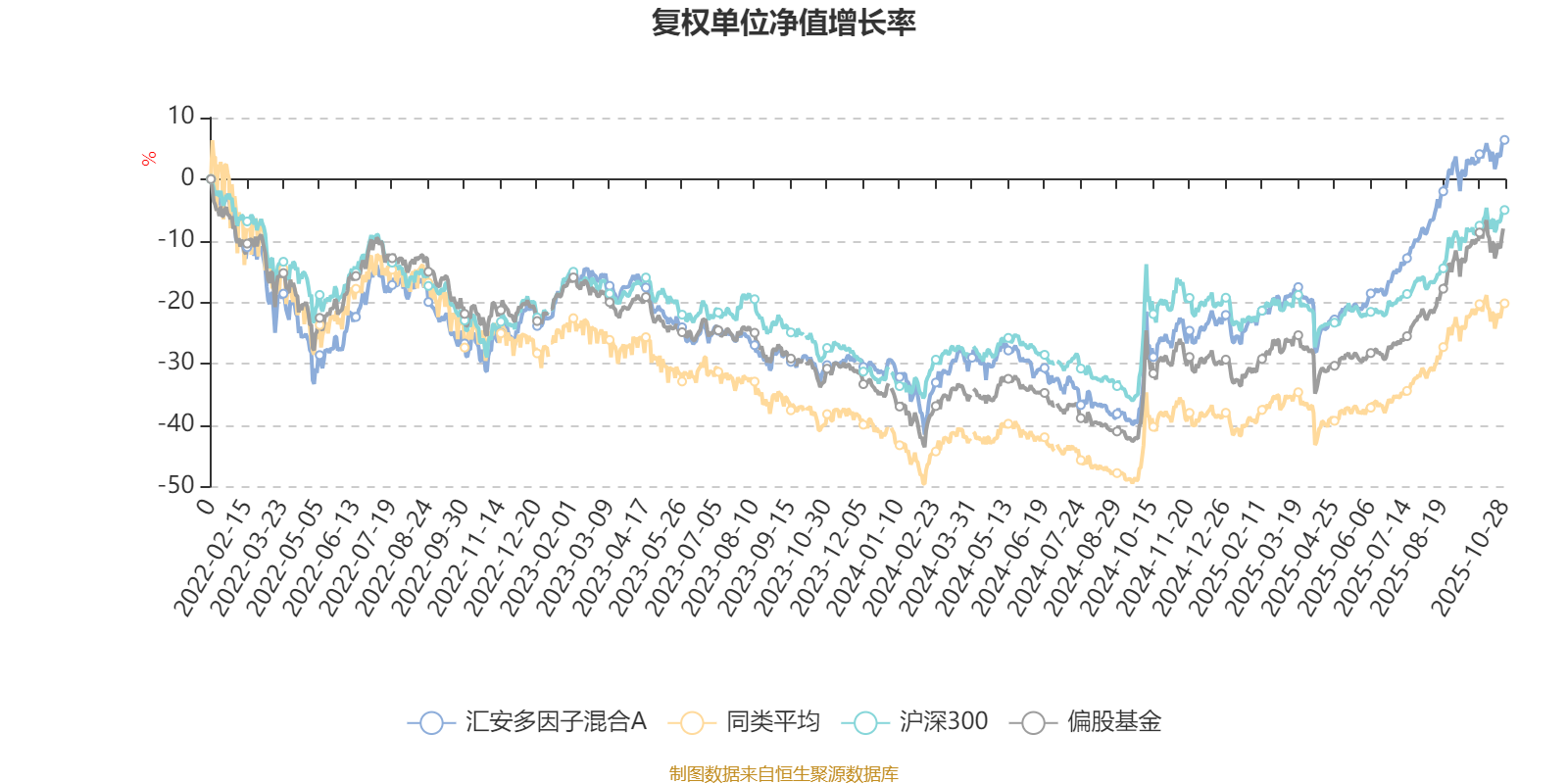 截至10月28日,汇安多因子混合A近三个月复权单位净值增长率为16.51%,位于同类可比基金250/621;近半年复权单位净值增长率为38.70%,位于同类可比基金168/619;近一年复权单位净值增长率为42.30%,位于同类可比基金149/611;近三年复权单位净值增长率为54.48%,位于同类可比基金60/518。