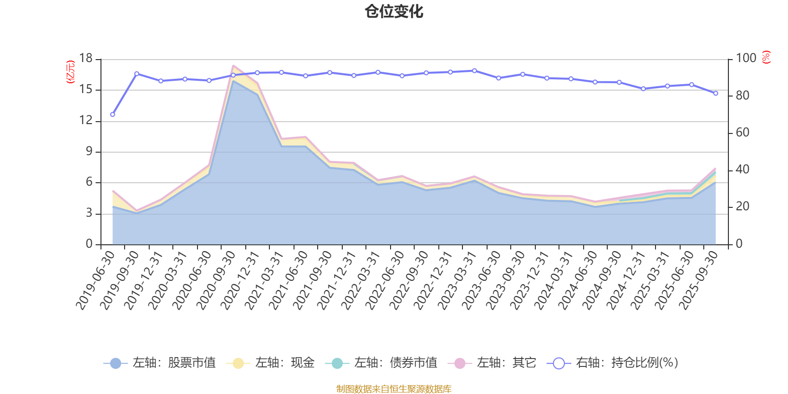 据定期报告数据统计,近三年平均股票仓位为88.32%,同类平均为85.66%。2023年一季度末基金达到93.75%的最高仓位,2019年上半年末最低,为70.15%。